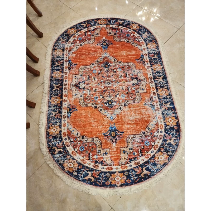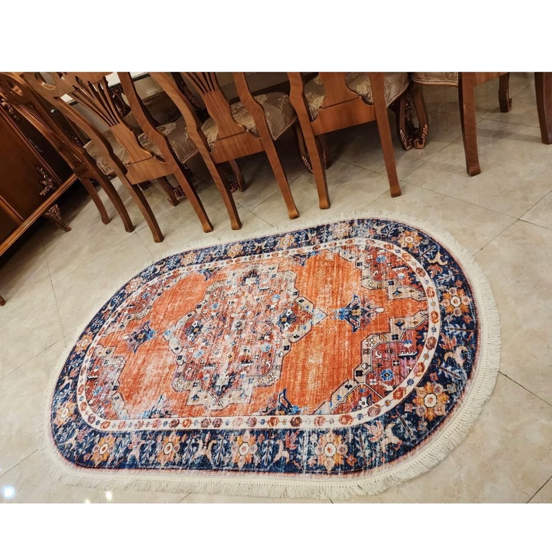 فرشینه مدل بیضی طرح پتینه 2متری (120در180) جنس پارچه مخمل هازان ترک